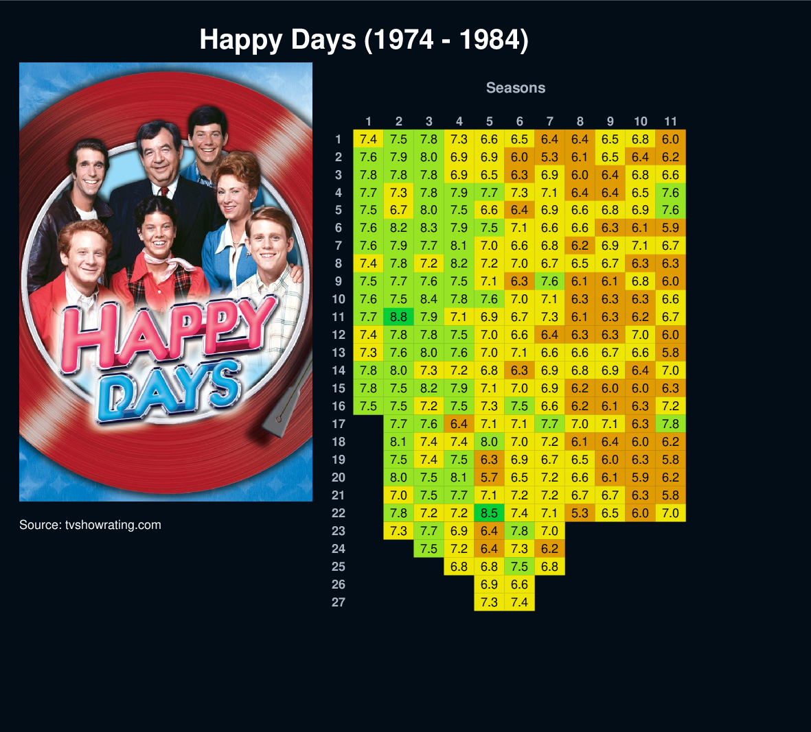 In 1950s Milwaukee the Cunningham family must contend with Fonzie, a motorcycle riding Casanova.