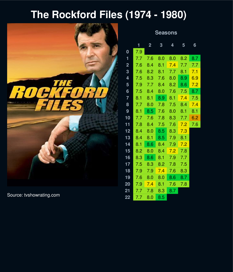 Cranky but likable L.A. PI Jim Rockford pulls no punches (but takes plenty of them). An ex-con sent to the slammer for a crime he didn't commit, Rockford takes on cases others don't want, aided by his tough old man, his lawyer girlfriend and some shady associates from his past.