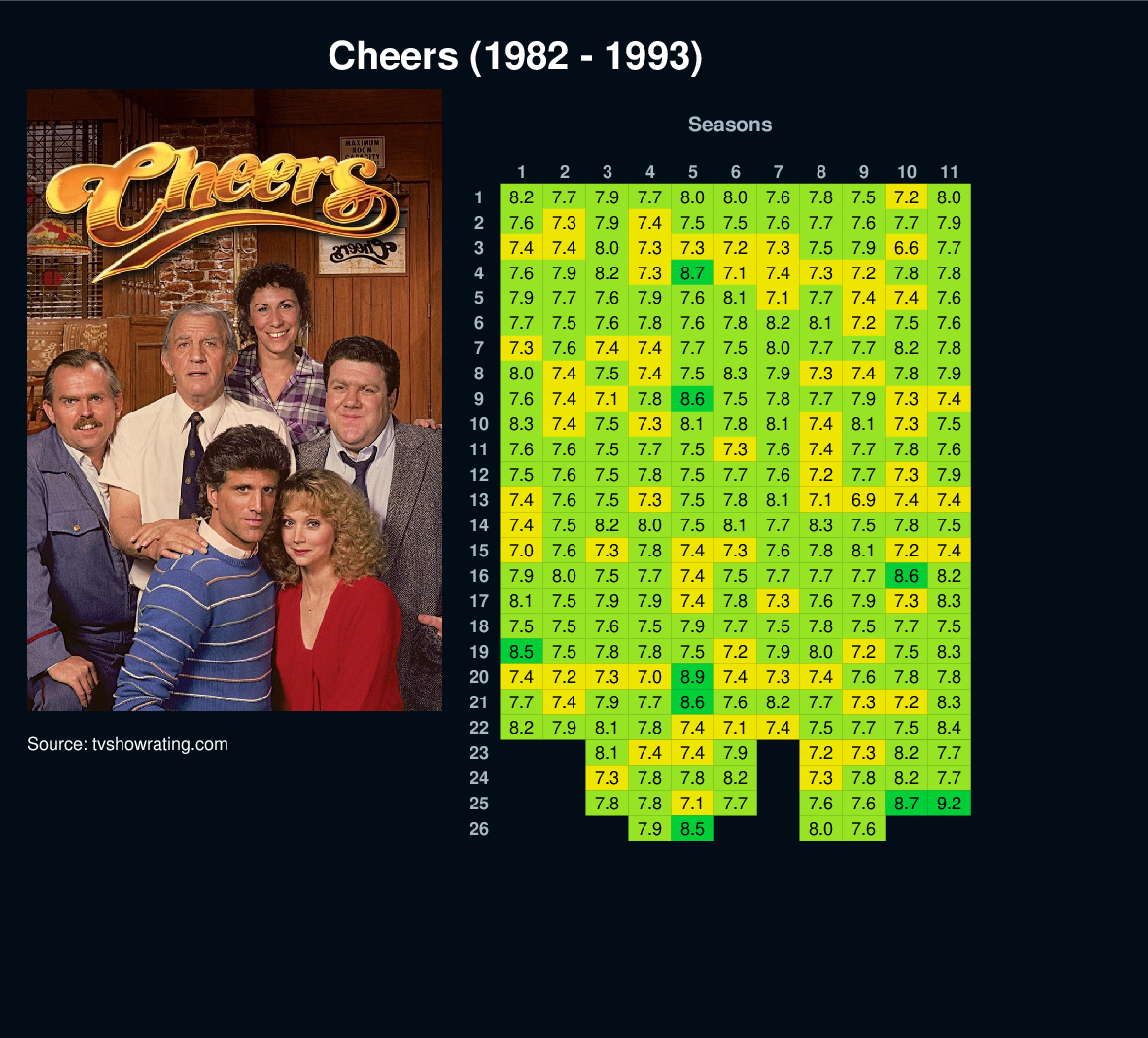 The story about a blue-collar Boston bar run by former sports star Sam Malone and the quirky and wonderful people who worked and drank there.