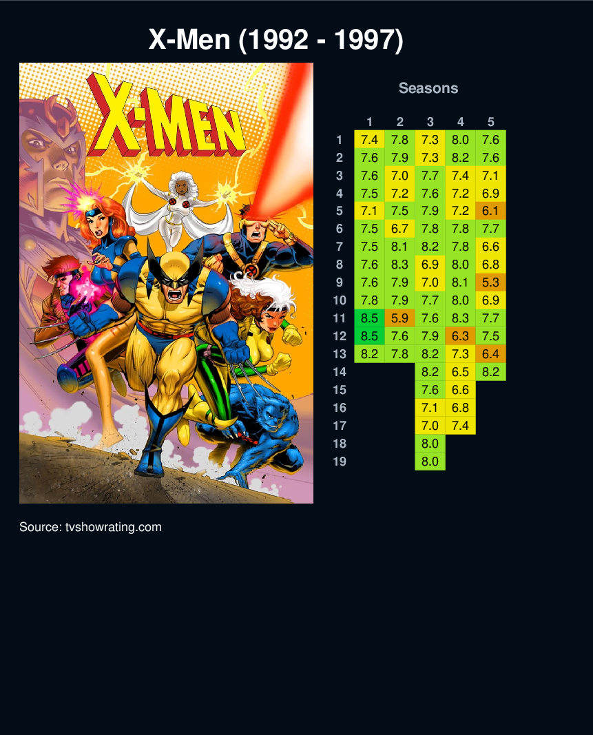 | 5 | 7.1 | 7.5 | 7.9 | 7.2 | 6.1 | ||||||||||||||||||||||||||||||||||||||||||||