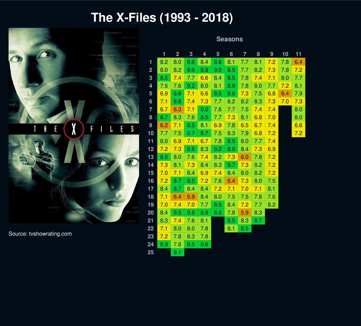 | 9 | 6.2 | 7.1 | 8.5 | 8.1 | 6.9 | 7.8 | 6.5 | 6.7 | 7.4 | 6.6 | |||||||||||||||||||||||||||||||||||||||