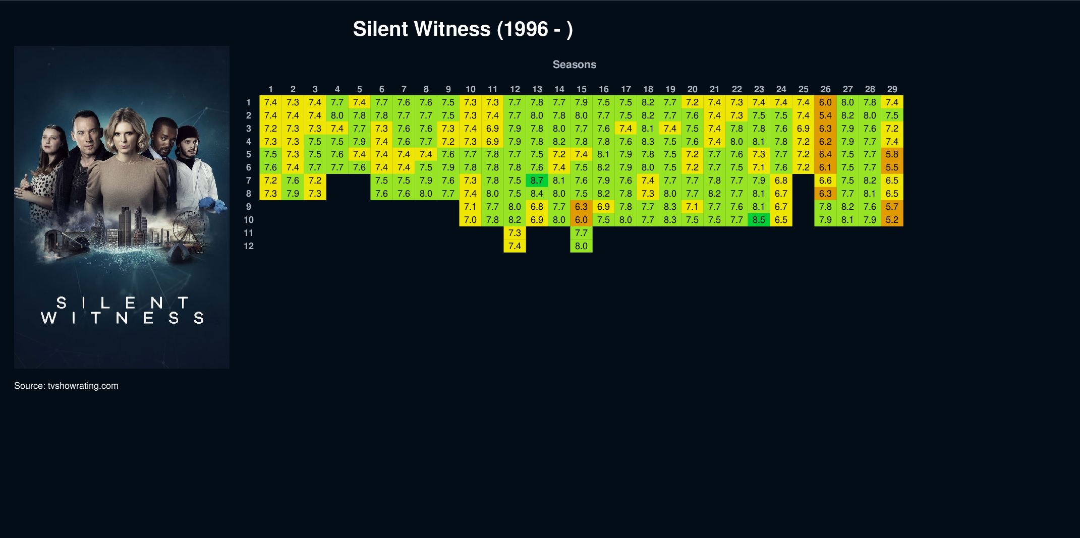 | 12 | 7.4 | 8.0 | |||||||||||||||||||||||||||||||||||||||||||||||