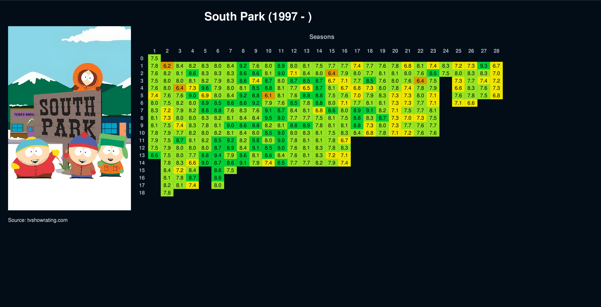 | 17 | 8.2 | 8.1 | 7.4 | 8.0 | |||||||||||||||||||||||||||||||||||||||||||||