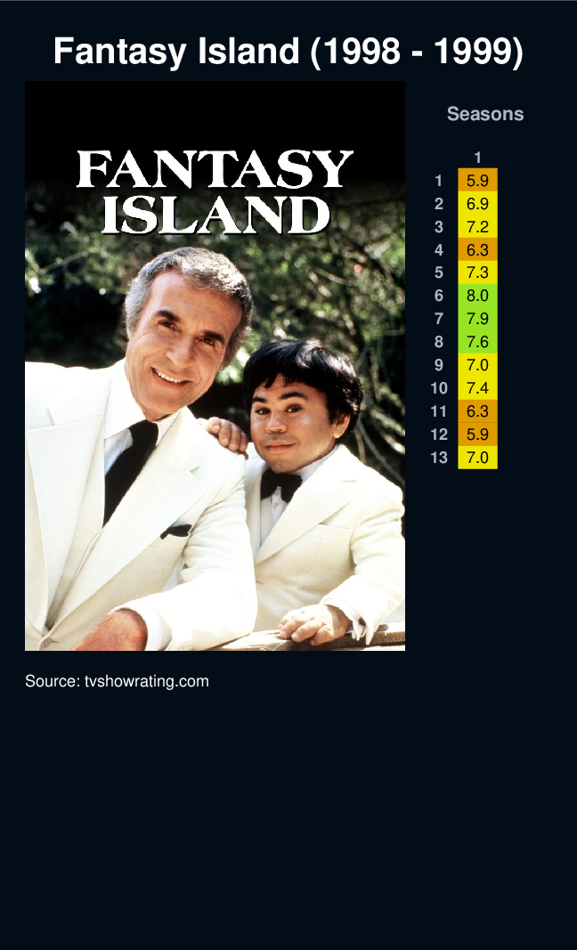 A magical island hosted by Mr Roarke and Tattoo where weekly guests learn valuable life lessons in their pursuit of fulfilling their dreams. Not all dreams are fulfilled as expected.