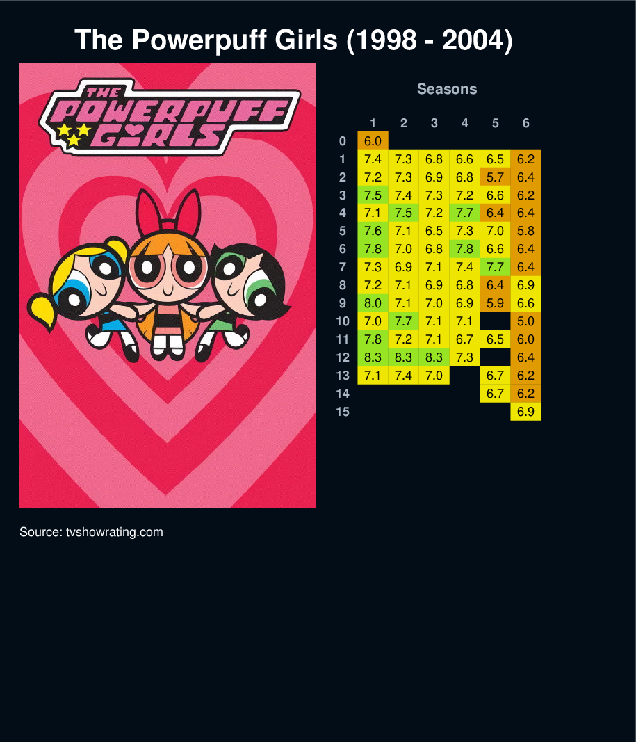| 6 | 7.8 | 7.0 | 6.8 | 7.8 | 6.6 | 6.4 | |||||||||||||||||||||||||||||||||||||||||||