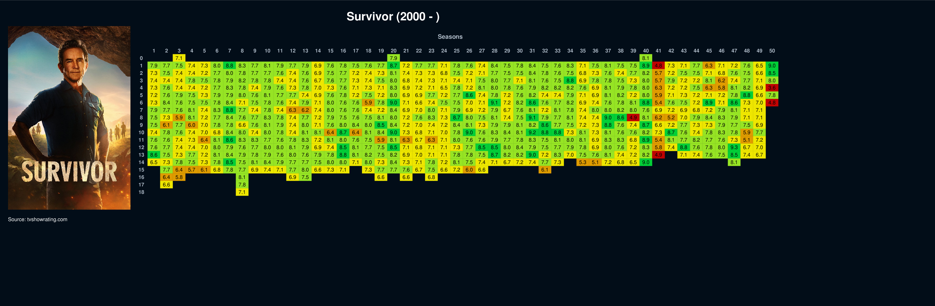 | 1 | 7.9 | 7.7 | 7.5 | 7.4 | 7.3 | 8.0 | 8.8 | 8.3 | 7.7 | 8.1 | 7.9 | 7.7 | 7.9 | 6.9 | 7.6 | 7.8 | 7.5 | 7.6 | 7.7 | 8.7 | 7.2 | 7.7 | 7.7 | 7.1 | 7.8 | 7.6 | 7.4 | 8.4 | 7.5 | 7.8 | 8.4 | 7.5 | 7.6 | 8.3 | 7.1 | 7.5 | 8.1 | 7.5 | 7.5 | 8.9 | 4.8 | 7.3 | 7.1 | 7.7 | 6.3 | 7.1 | 7.2 | 7.6 | 6.5 | 9.0 |