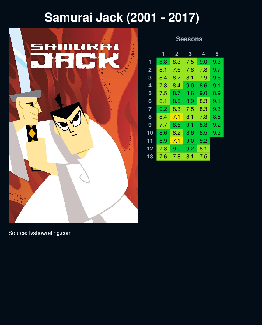A great warrior is displaced to the distant future by the evil shape-shifting wizard Aku. The world has become a bleak place under the rule of Aku, segregated into fantastic tribes and ruled by Aku's evil robot warlords. Jack travels this foreign landscape in search of a time portal that can return him to his home time so he can "undo the future that is Aku!".