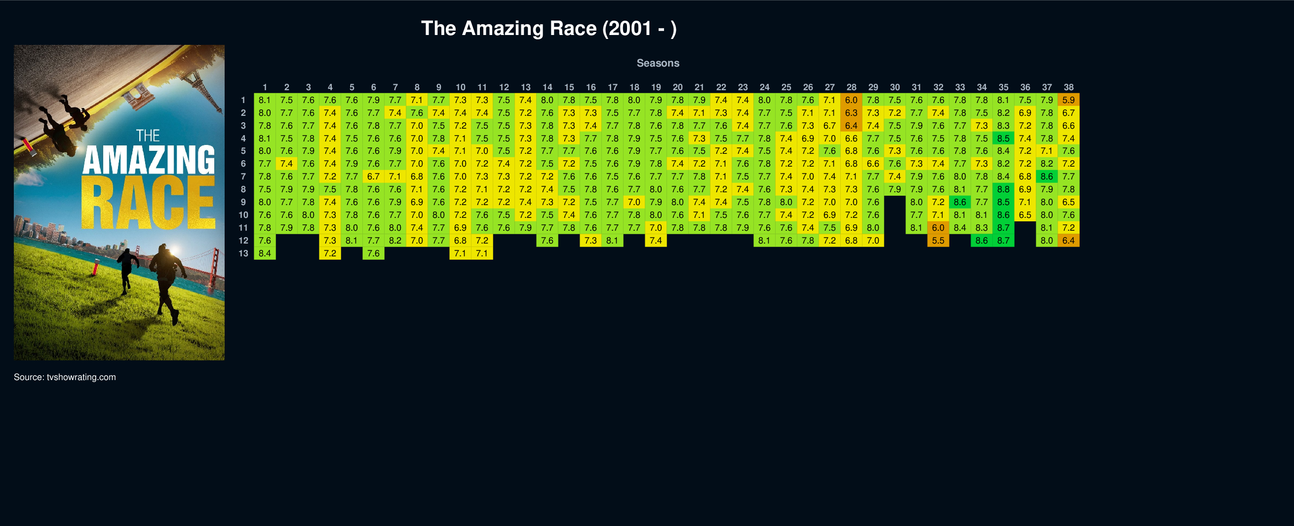 | 13 | 8.4 | 7.2 | 7.6 | 7.1 | 7.1 | ||||||||||||||||||||||||||||||||||||||||||||