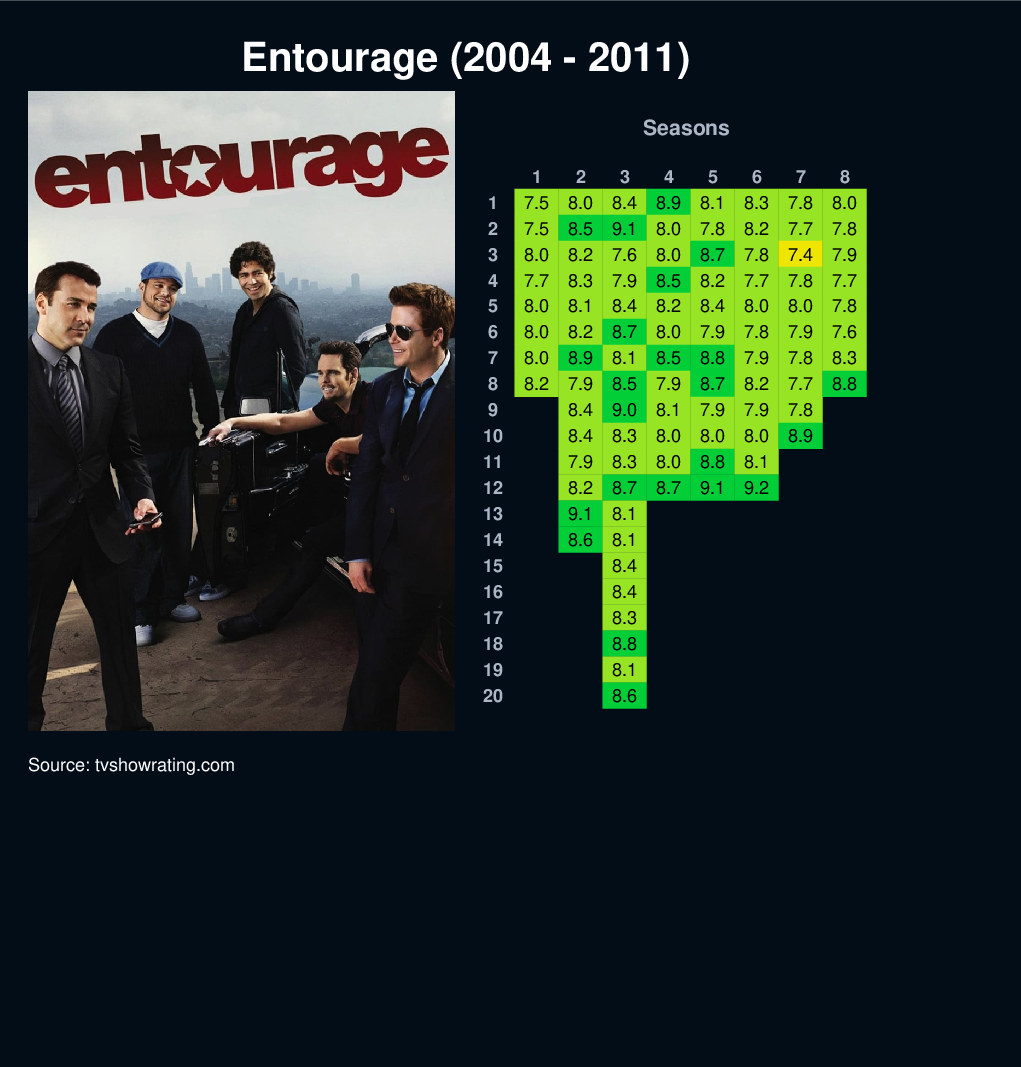 Film star Vince Chase navigates the vapid terrain of Los Angeles with a close circle of friends and his trusty agent.