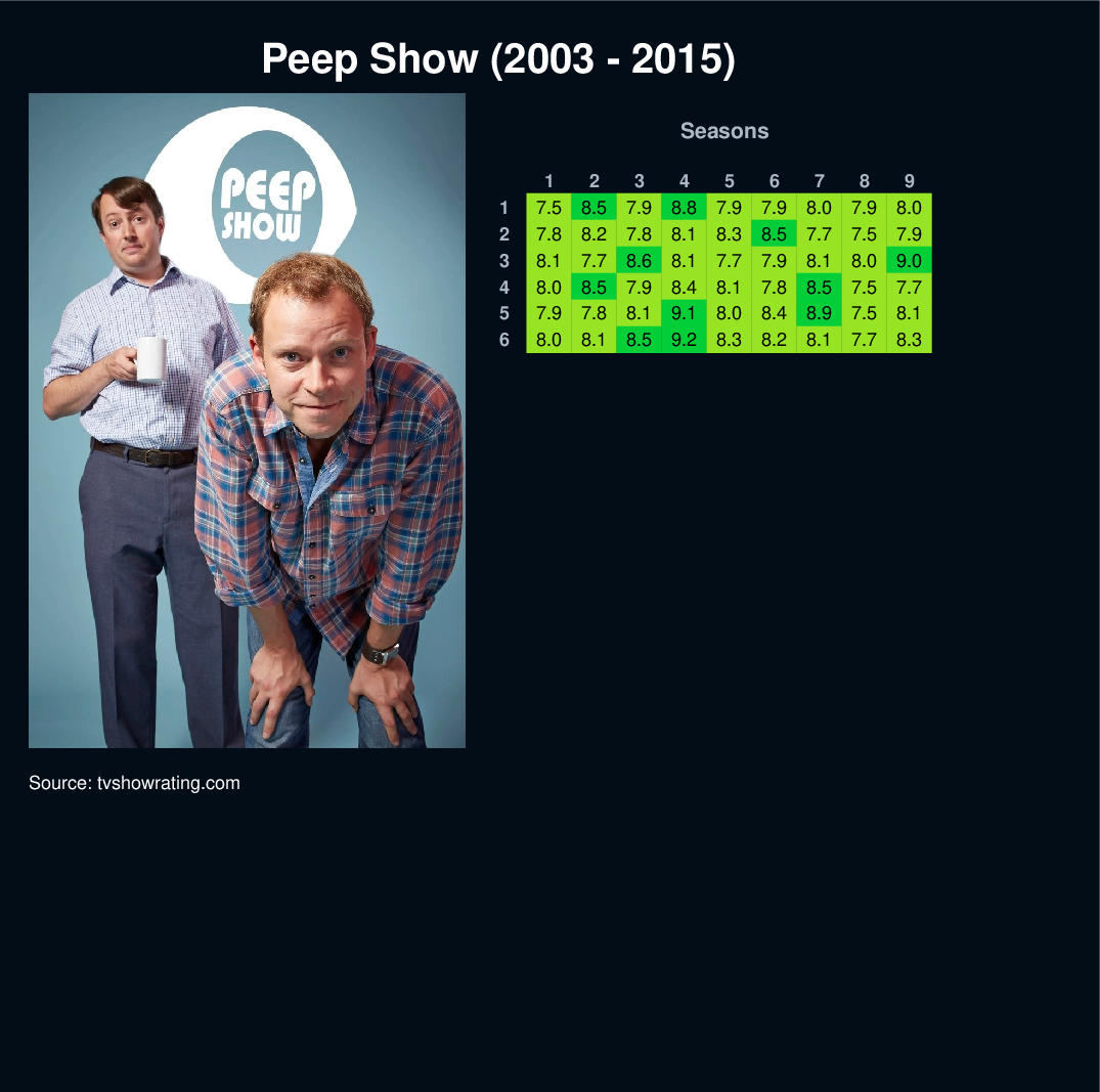 Peep Show follows the lives of two men from their twenties to thirties, Mark Corrigan, who has steady employment for most of the series, and Jeremy "Jez" Usbourne, an unemployed would-be musician.