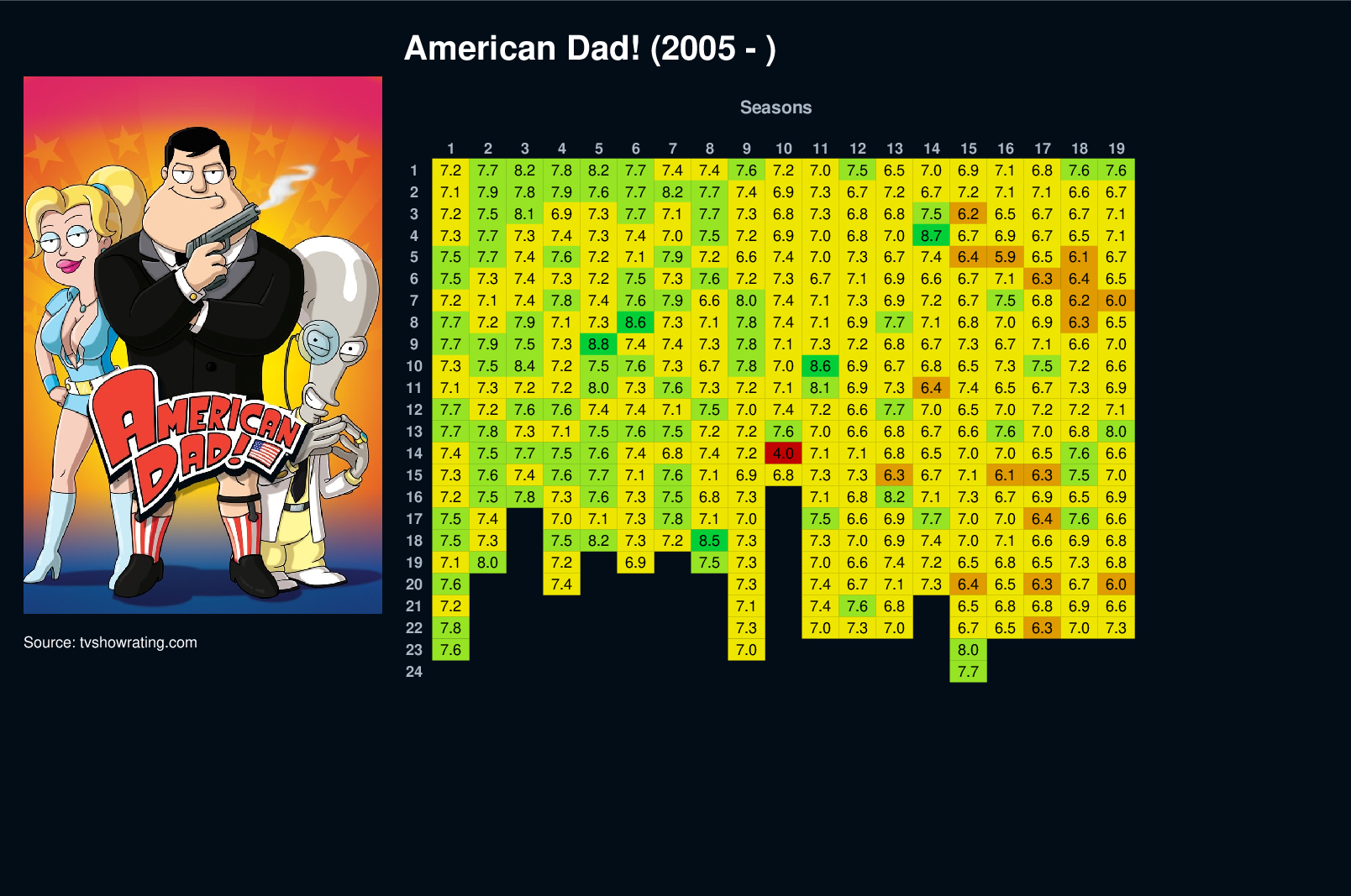 | 23 | 7.6 | 7.0 | 8.0 | ||||||||||||||||||||||||||||||||||||||||||||||
