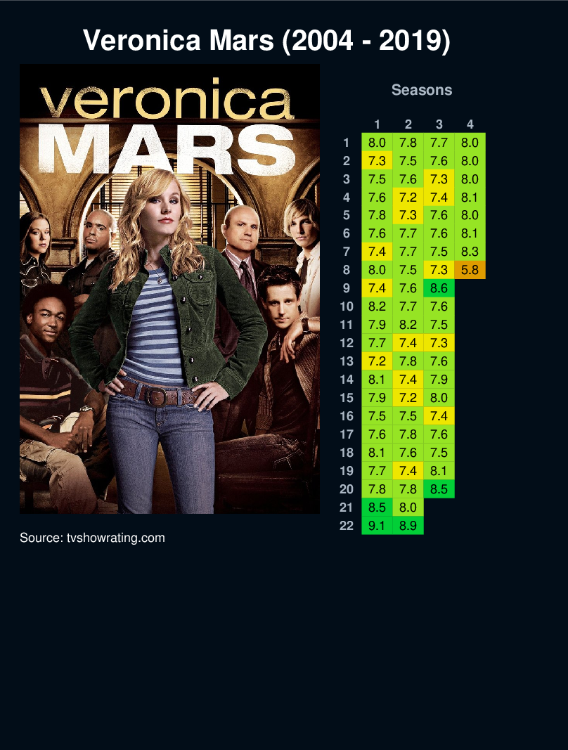 | 5 | 7.8 | 7.3 | 7.6 | 8.0 | |||||||||||||||||||||||||||||||||||||||||||||