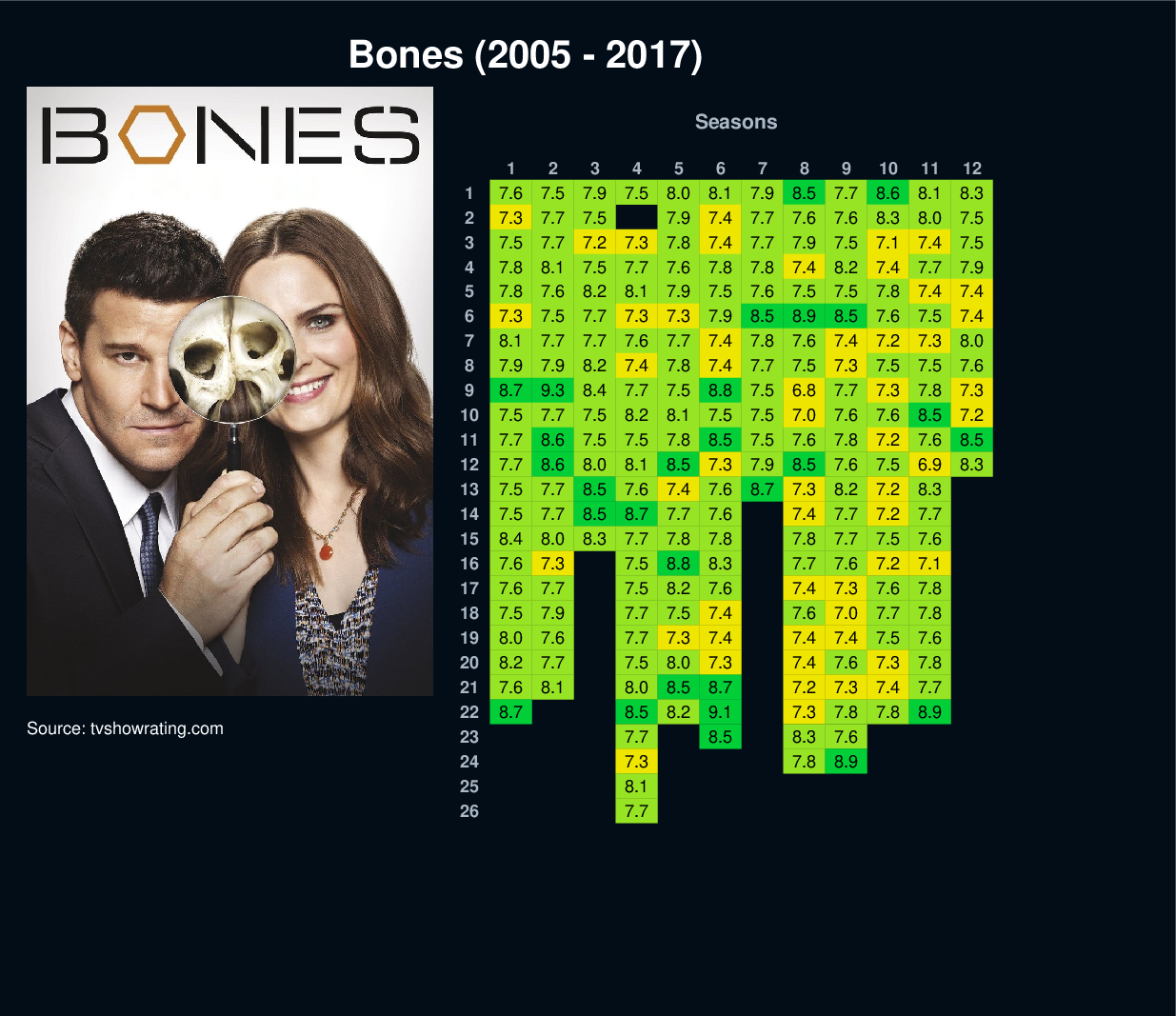 Dr. Temperance Brennan and her colleagues at the Jeffersonian's Medico-Legal Lab assist Special Agent Seeley Booth with murder investigations when the remains are so badly decomposed, burned or destroyed that the standard identification methods are useless.