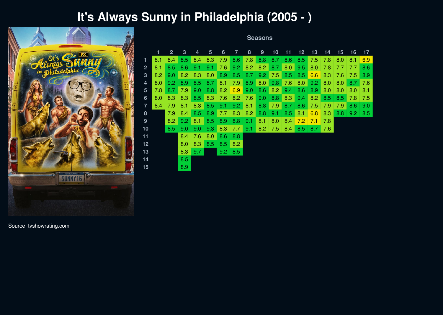 | 8 | 7.9 | 8.4 | 8.5 | 8.9 | 7.7 | 8.3 | 8.2 | 8.8 | 9.1 | 8.5 | 8.1 | 6.8 | 8.3 | 8.8 | 9.2 | 8.5 | |||||||||||||||||||||||||||||||||
