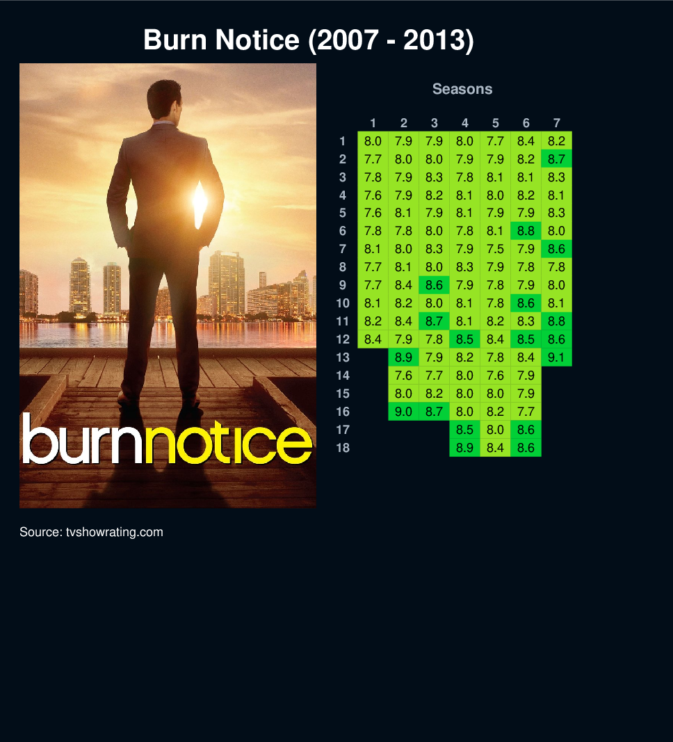 | 6 | 7.8 | 7.8 | 8.0 | 7.8 | 8.1 | 8.8 | 8.0 | ||||||||||||||||||||||||||||||||||||||||||