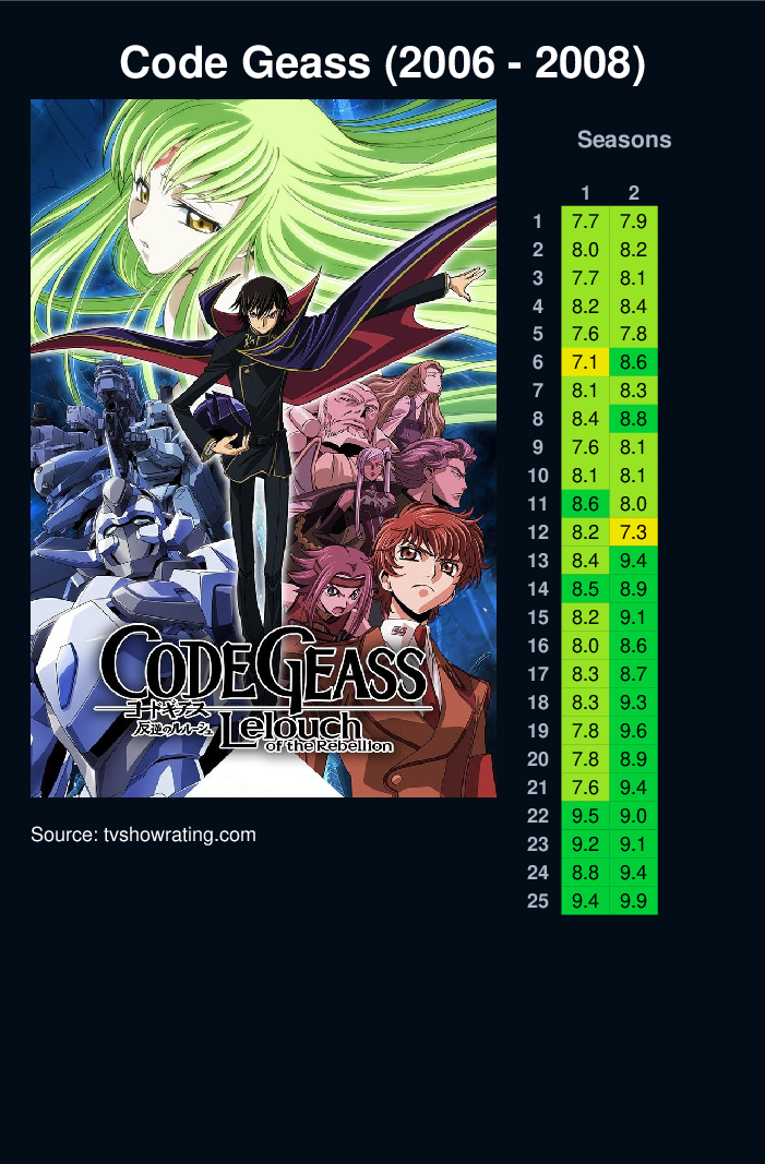 Japan has been invaded and conquered by the Britannian Empire. Japan is now known as Area 11 and its citizens known as Elevens. The Britannian Empire takes away Japan's autonomous power and imposes its rule through the use of Knightmares. The Empire's rule has never faltered, but cracks have begun to show...