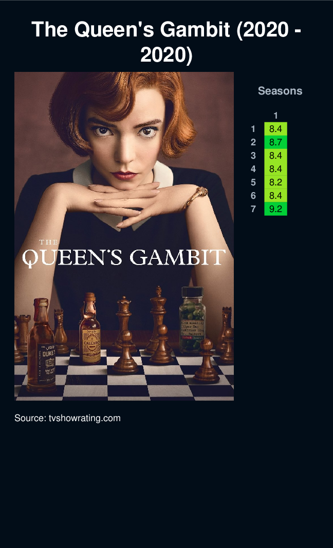 In a 1950s orphanage, a young girl reveals an astonishing talent for chess and begins an unlikely journey to stardom while grappling with addiction.
