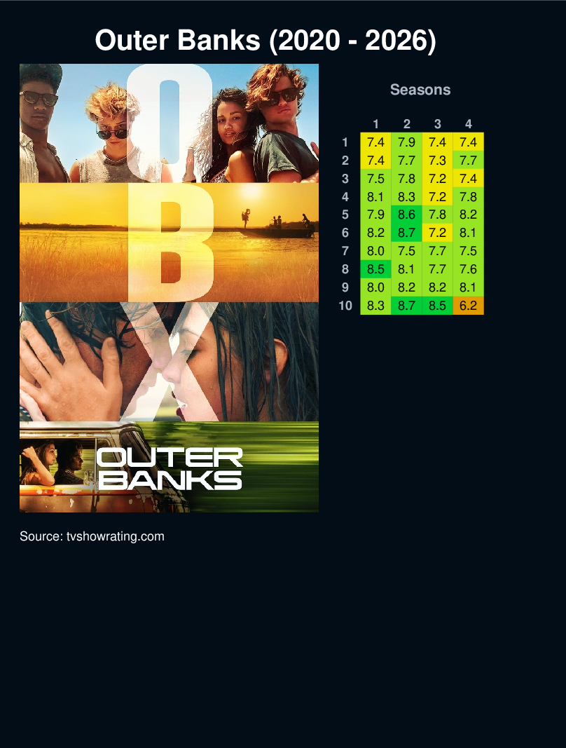 | 6 | 8.2 | 8.7 | 7.2 | 8.1 | |||||||||||||||||||||||||||||||||||||||||||||