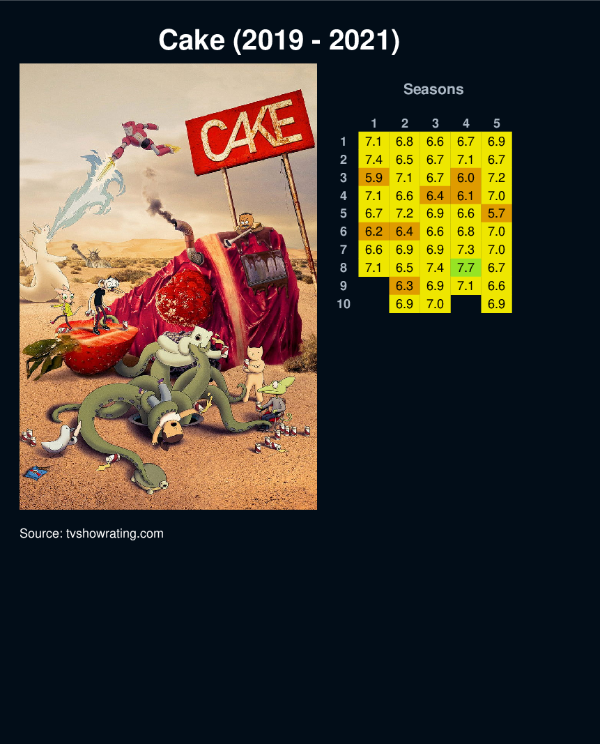 | 4 | 7.1 | 6.6 | 6.4 | 6.1 | 7.0 | ||||||||||||||||||||||||||||||||||||||||||||
