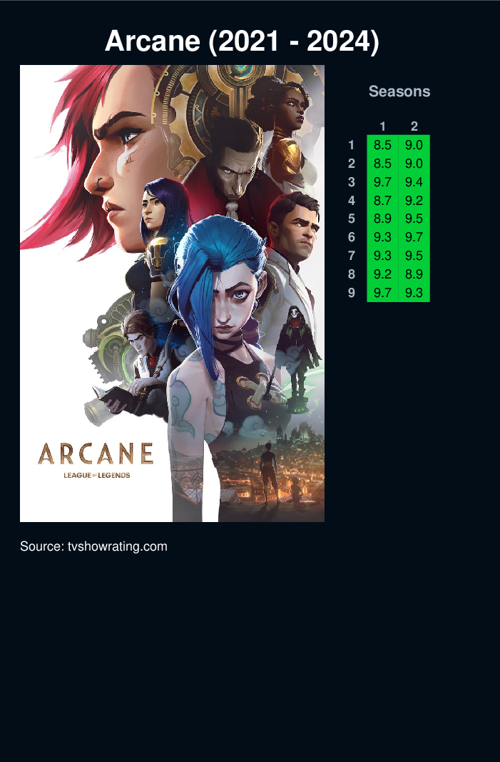 Amid the stark discord of twin cities Piltover and Zaun, two sisters fight on rival sides of a war between magic technologies and clashing convictions.