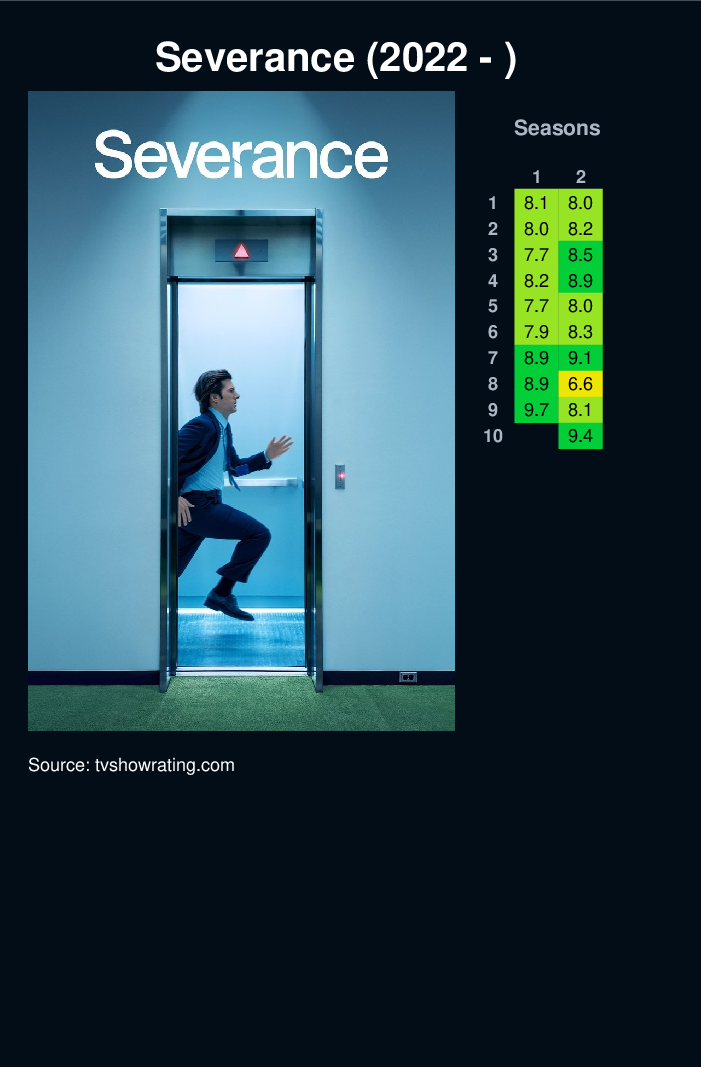Mark leads a team of office workers whose memories have been surgically divided between their work and personal lives. When a mysterious colleague appears outside of work, it begins a journey to discover the truth about their jobs.