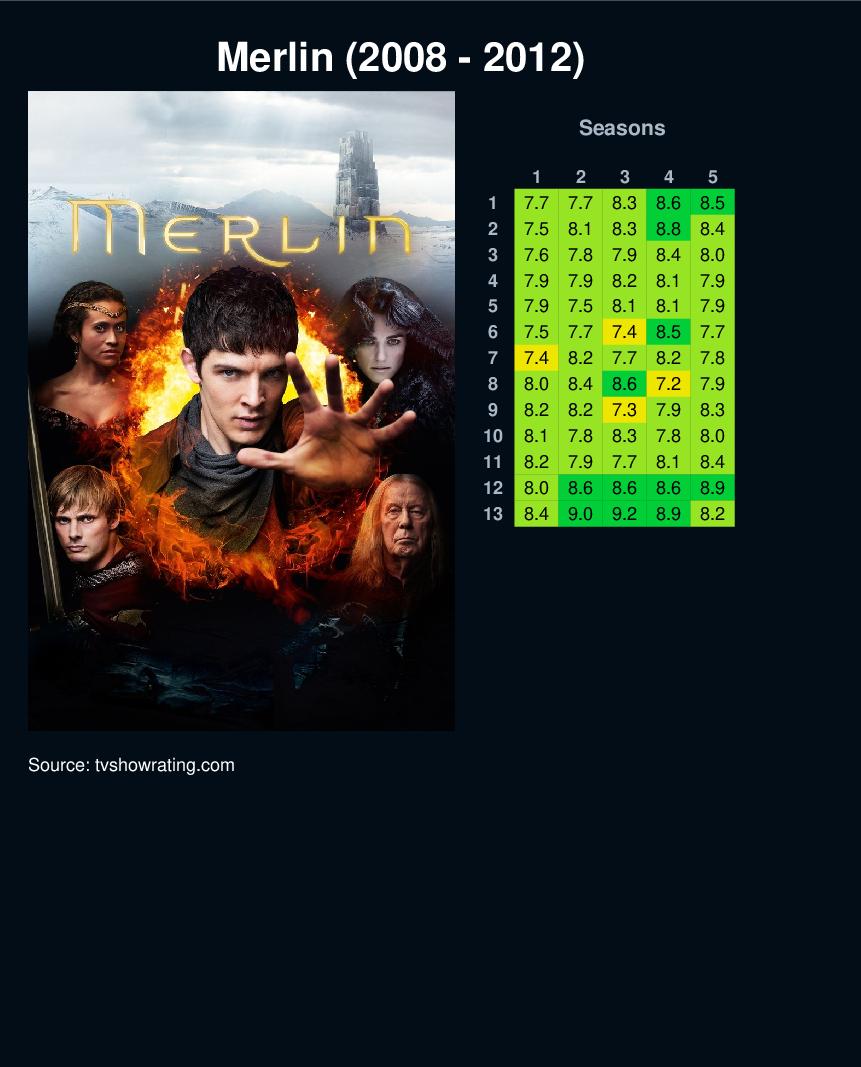 The unlikely friendship between Merlin, a young man gifted with extraordinary magical powers, and Prince Arthur, heir to the crown of Camelot.