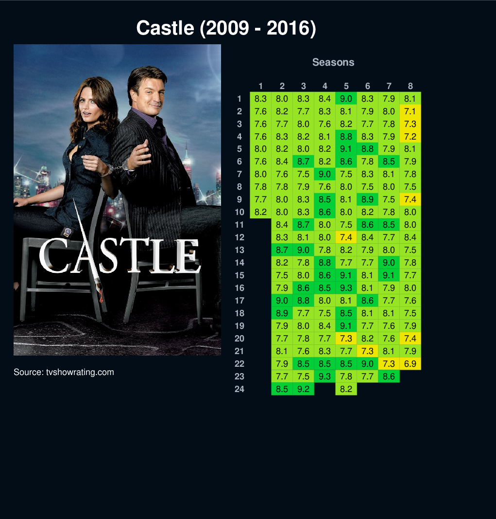 | 4 | 7.6 | 8.3 | 8.2 | 8.1 | 8.8 | 8.3 | 7.9 | 7.2 | |||||||||||||||||||||||||||||||||||||||||