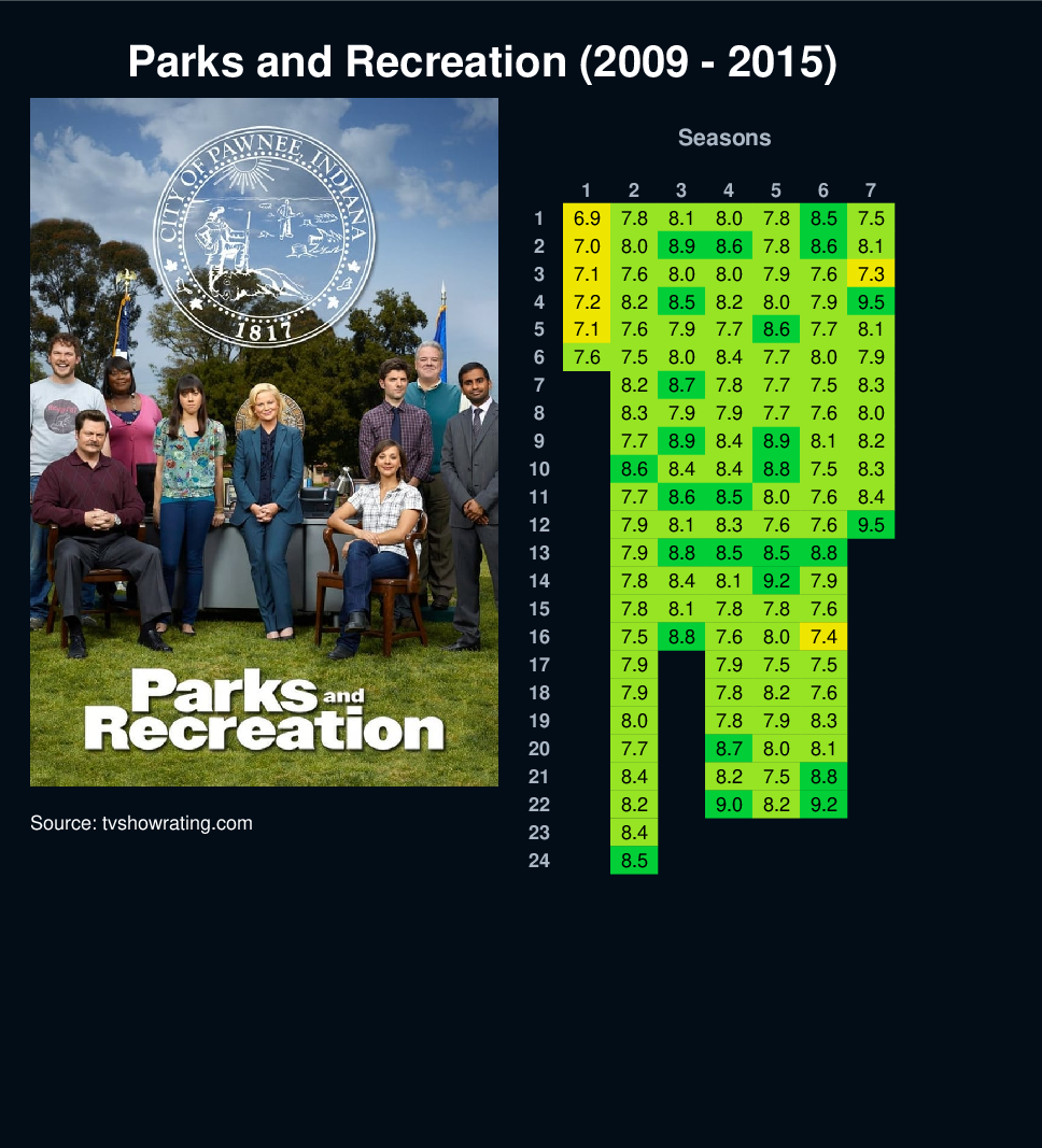 In an attempt to beautify her town — and advance her career — Leslie Knope, a mid-level bureaucrat in the Parks and Recreation Department of Pawnee, Indiana, takes on bureaucrats, cranky neighbors, and single-issue fanatics whose weapons are lawsuits, the jumble of city codes, and the democratic process she loves so much.