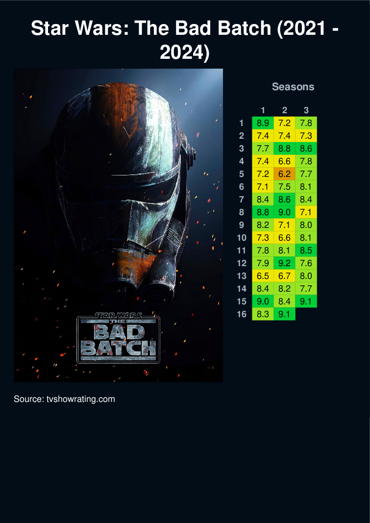 The 'Bad Batch' of elite and experimental clones make their way through an ever-changing galaxy in the immediate aftermath of the Clone Wars.