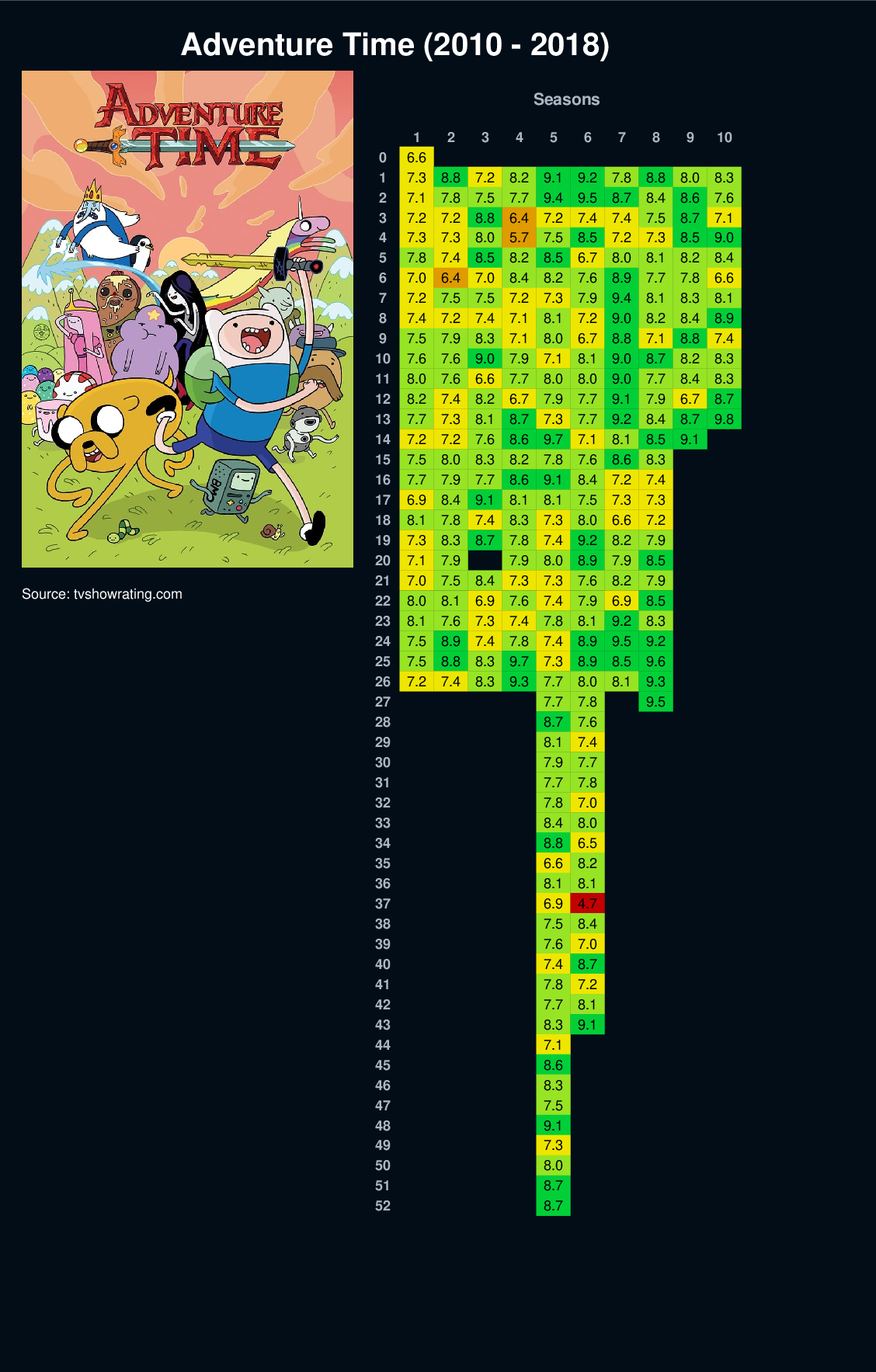 | 52 | 8.7 | ||||||||||||||||||||||||||||||||||||||||||||||||