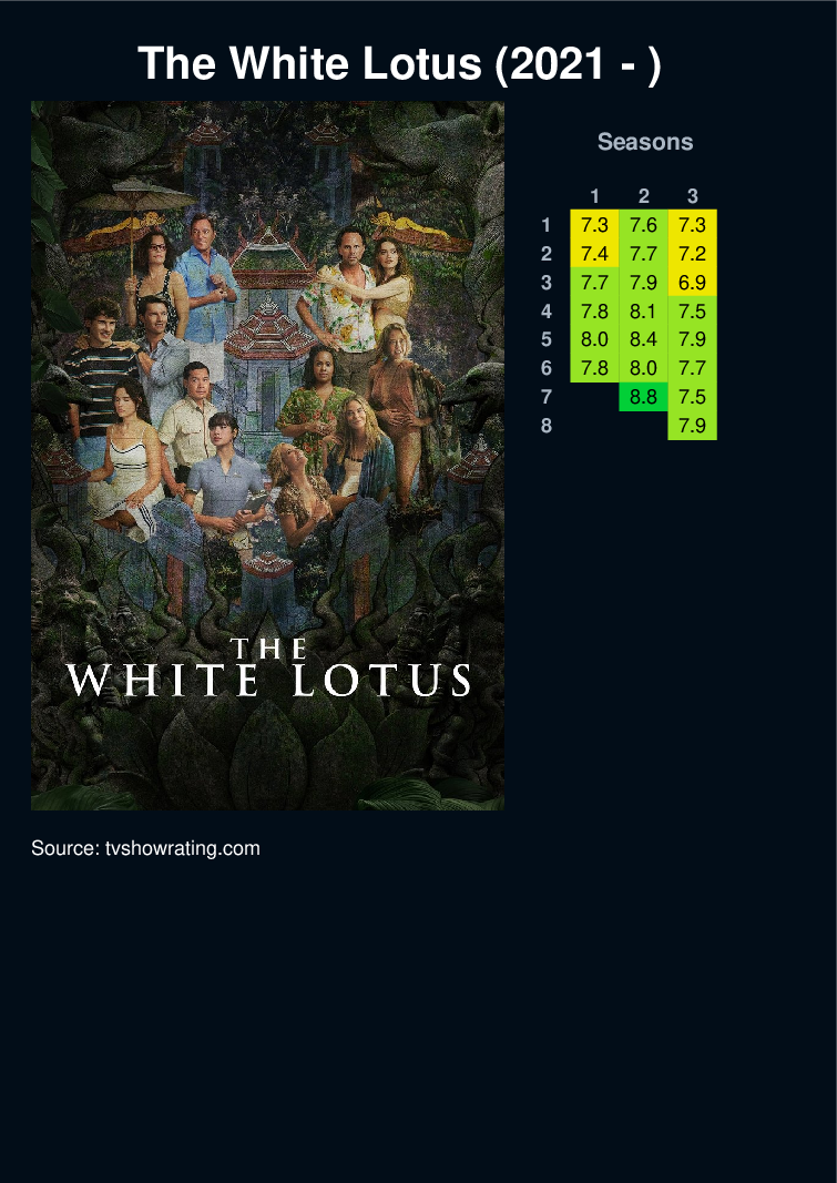 | 6 | 7.8 | 8.0 | 7.7 | ||||||||||||||||||||||||||||||||||||||||||||||