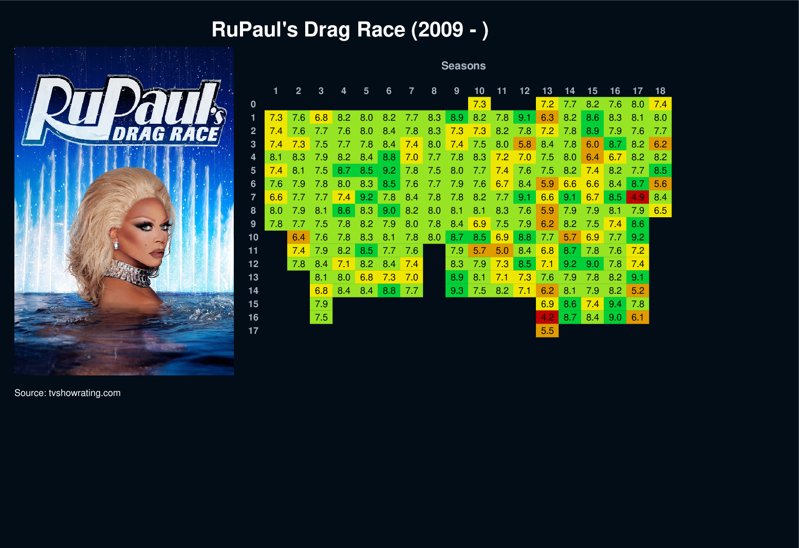 Join RuPaul, the world's most famous drag queen, as the host, mentor and judge for the ultimate in drag queen competitions. The top drag queens in the U.S. will vie for drag stardom as RuPaul, in full glamazon drag, will reign supreme in all judging and eliminations while helping guide the contestants as they prepare for each challenge.