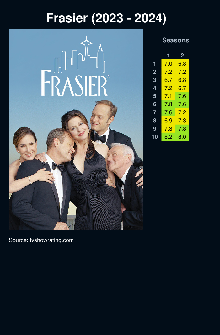 After many years spent at the “Cheers” bar, Frasier moves back home to Seattle to work as a radio psychiatrist after his policeman father gets shot in the hip on duty.