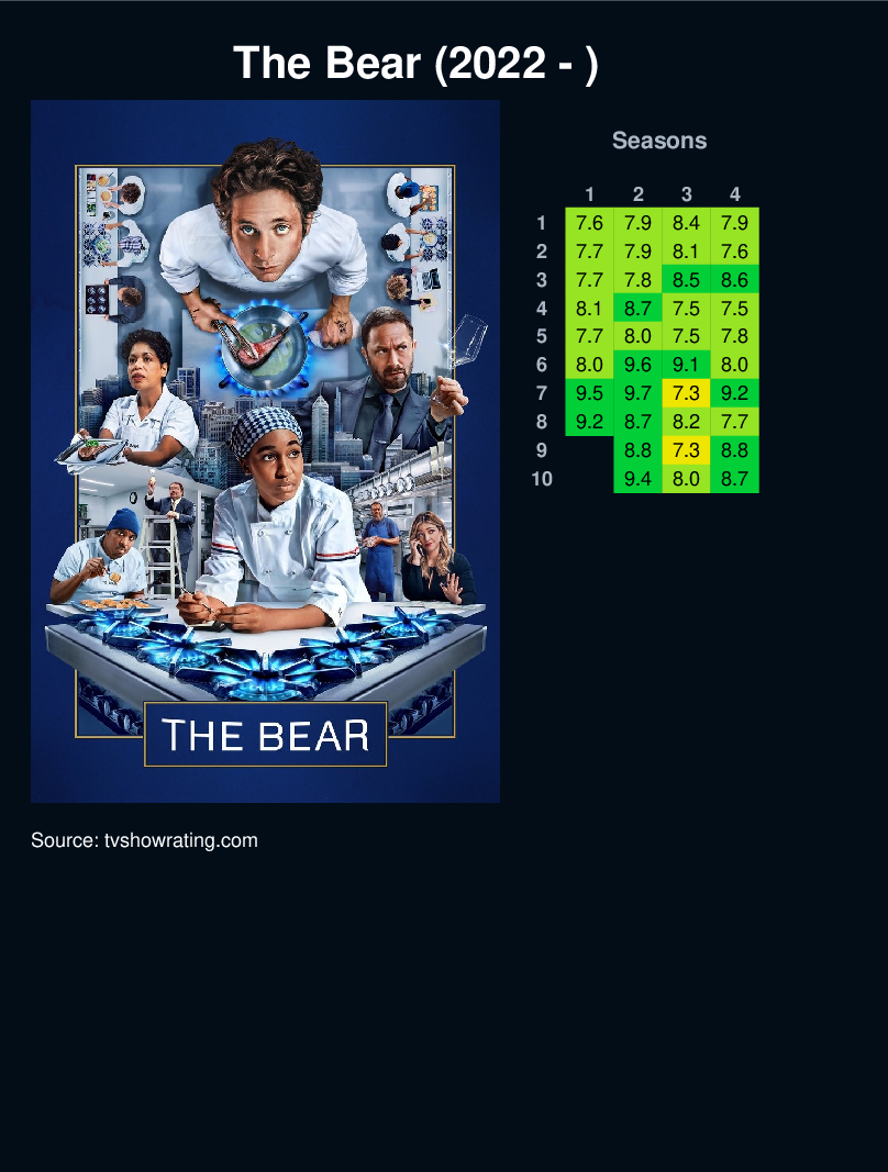 Carmy, a young fine-dining chef, comes home to Chicago to run his family sandwich shop. As he fights to transform the shop and himself, he works alongside a rough-around-the-edges crew that ultimately reveal themselves as his chosen family.