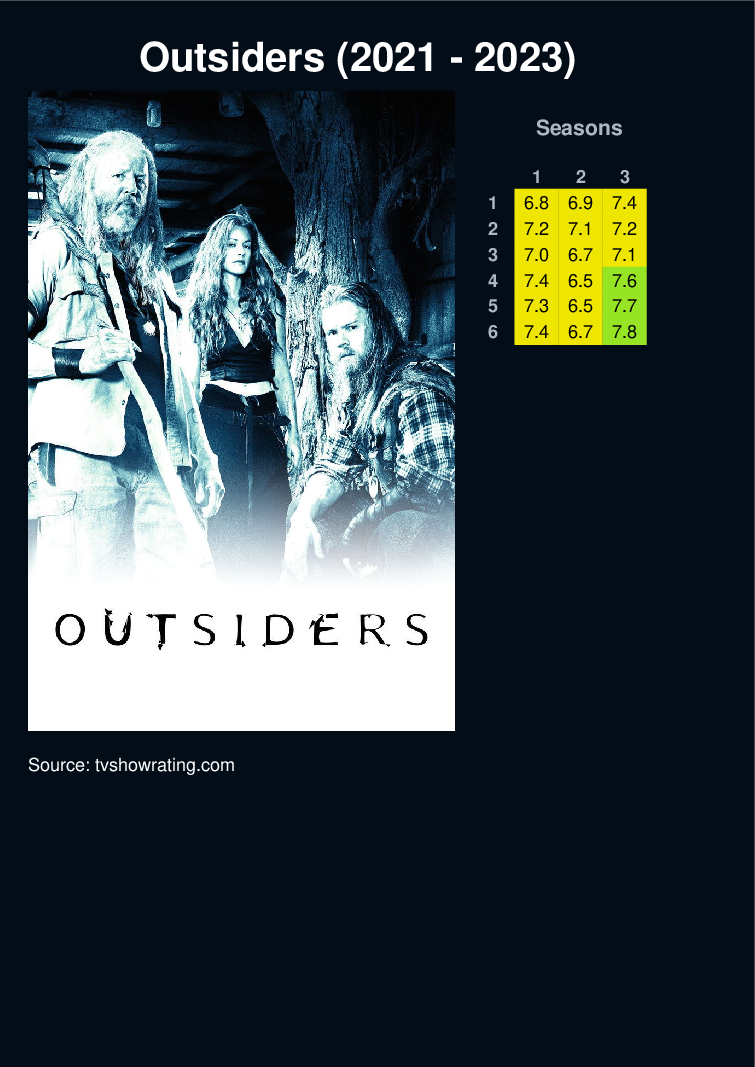 A struggle for power and control set in the rugged and mysterious hills of Appalachia, "Outsiders" tells the story of the Farrell clan, a family of outsiders who've been in these parts since before anyone can remember. Living off the grid and above the law on their mountaintop homestead, they'll protect their world and defend their way of life using any means necessary.