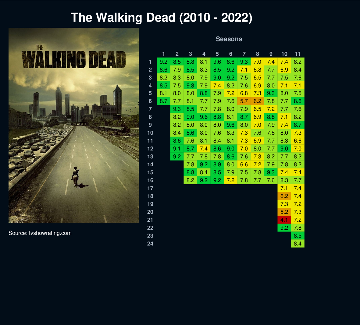 | 22 | 9.2 | 7.8 | |||||||||||||||||||||||||||||||||||||||||||||||