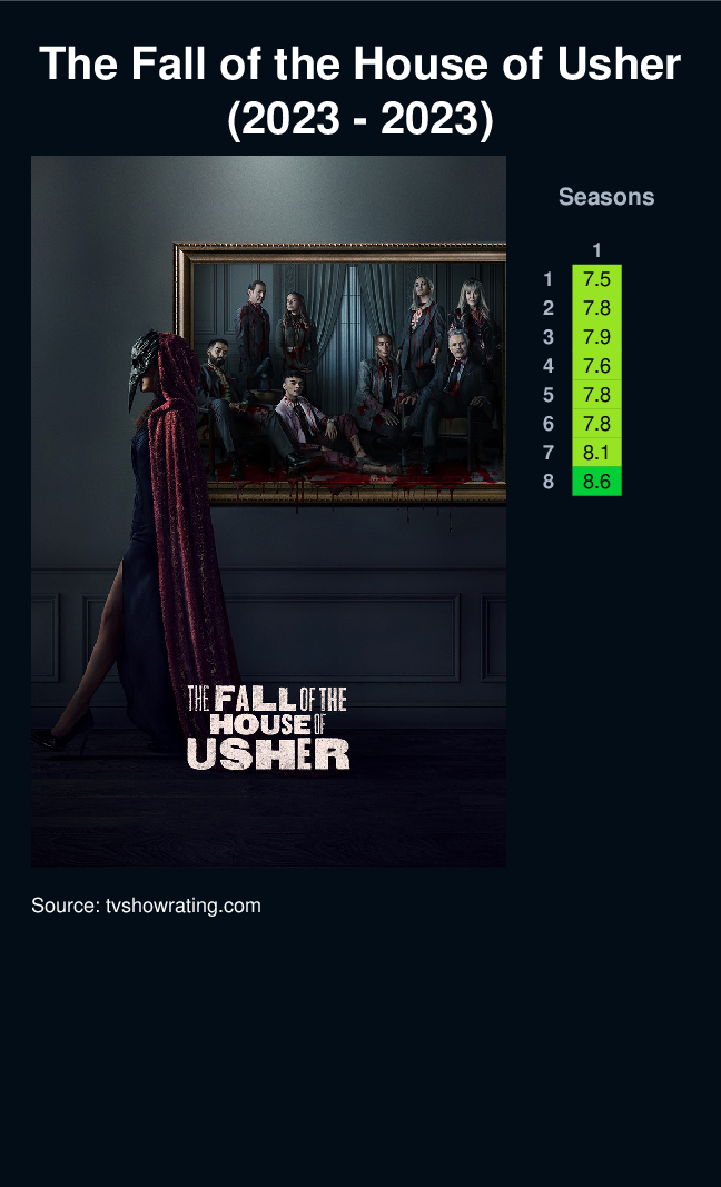 Ruthless siblings Roderick and Madeline Usher have built Fortunato Pharmaceuticals into an empire of wealth, privilege and power. But past secrets come to light when the heirs to the Usher dynasty start dying at the hands of a mysterious woman from their youth.