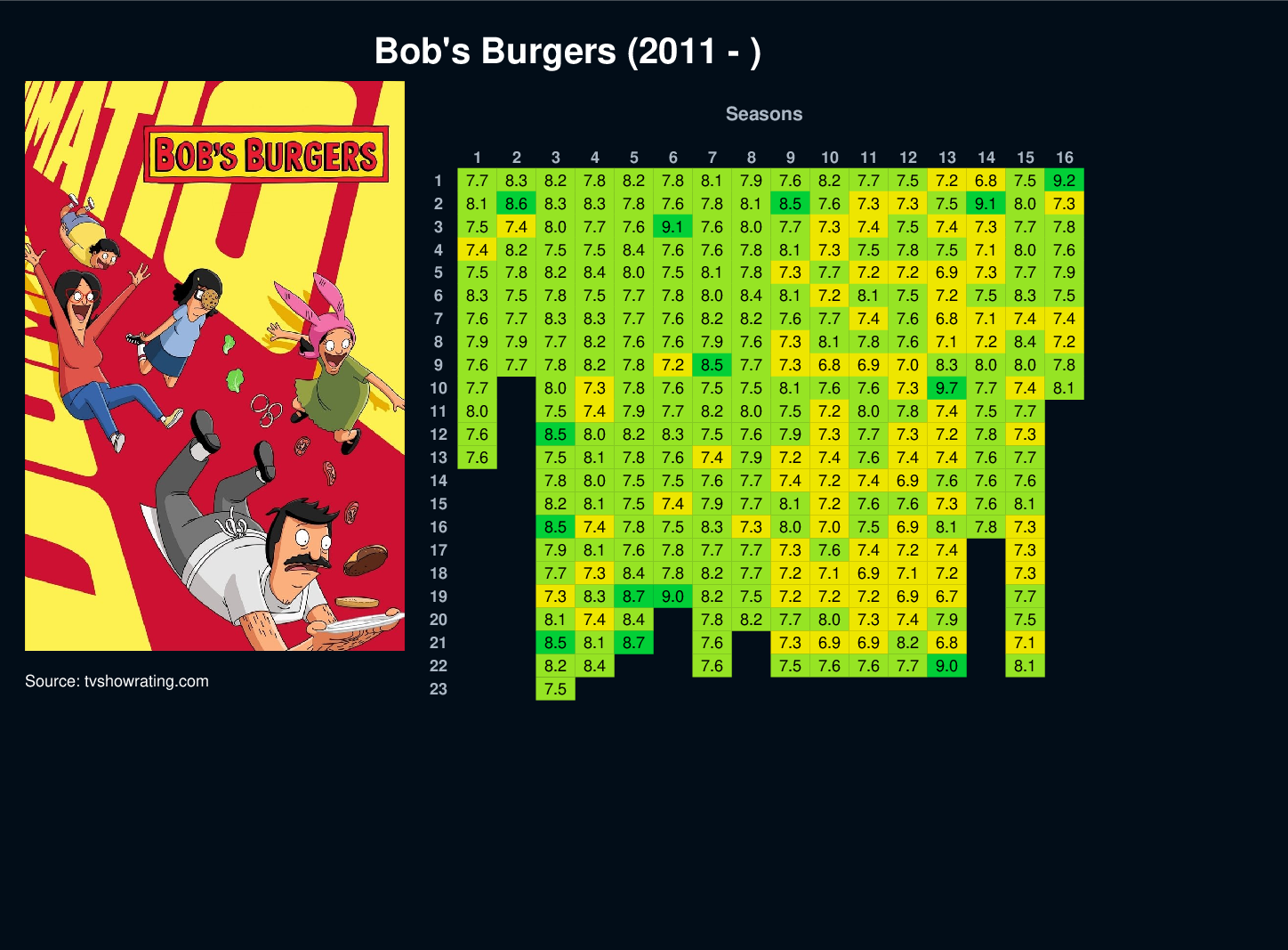 Bob's Burgers follows a third-generation restaurateur, Bob, as he runs Bob's Burgers with the help of his wife and their three kids. Bob and his quirky family have big ideas about burgers, but fall short on service and sophistication. Despite the greasy counters, lousy location and a dearth of customers, Bob and his family are determined to make Bob's Burgers "grand re-re-re-opening" a success.