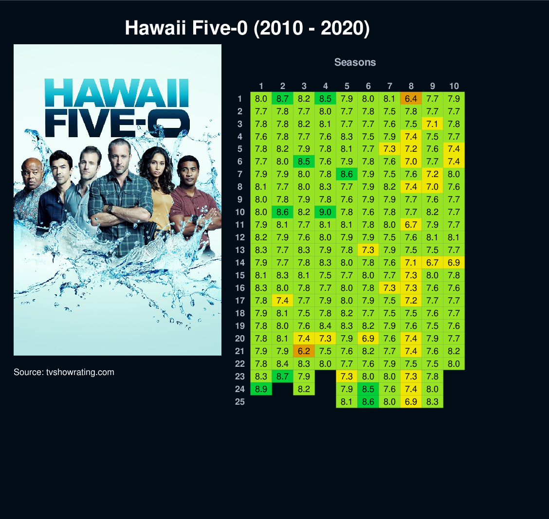 | 5 | 7.8 | 8.2 | 7.9 | 7.8 | 8.1 | 7.7 | 7.3 | 7.2 | 7.6 | 7.4 | |||||||||||||||||||||||||||||||||||||||