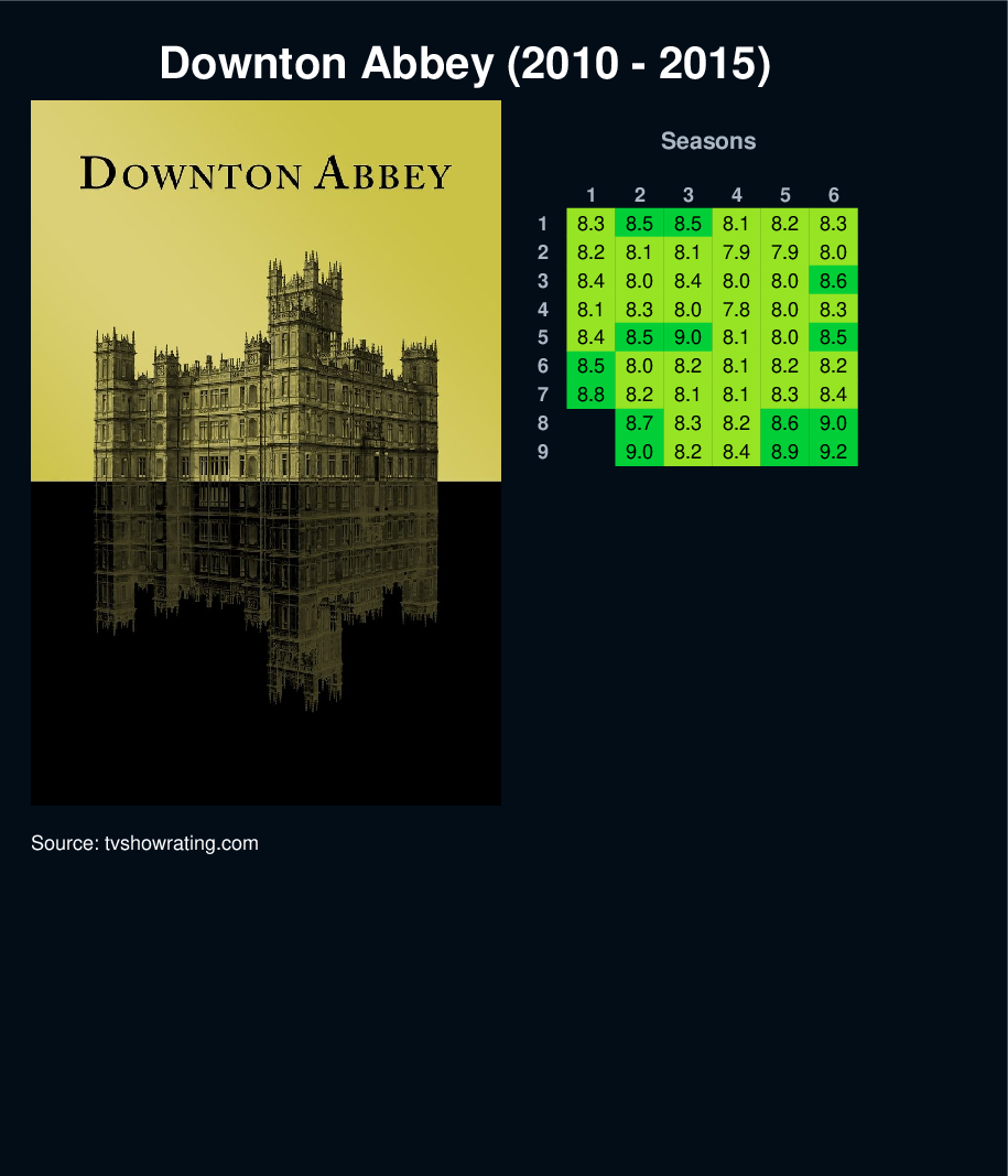 A chronicle of the lives of the aristocratic Crawley family and their servants in the post-Edwardian era—with great events in history having an effect on their lives and on the British social hierarchy.