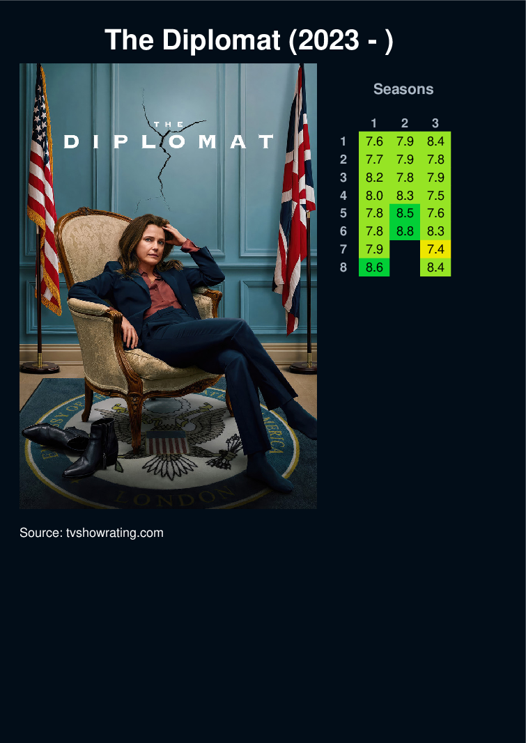 Amid an international crisis, a US diplomat contends with her high-profile job as ambassador to the UK and her strained marriage to a political star.