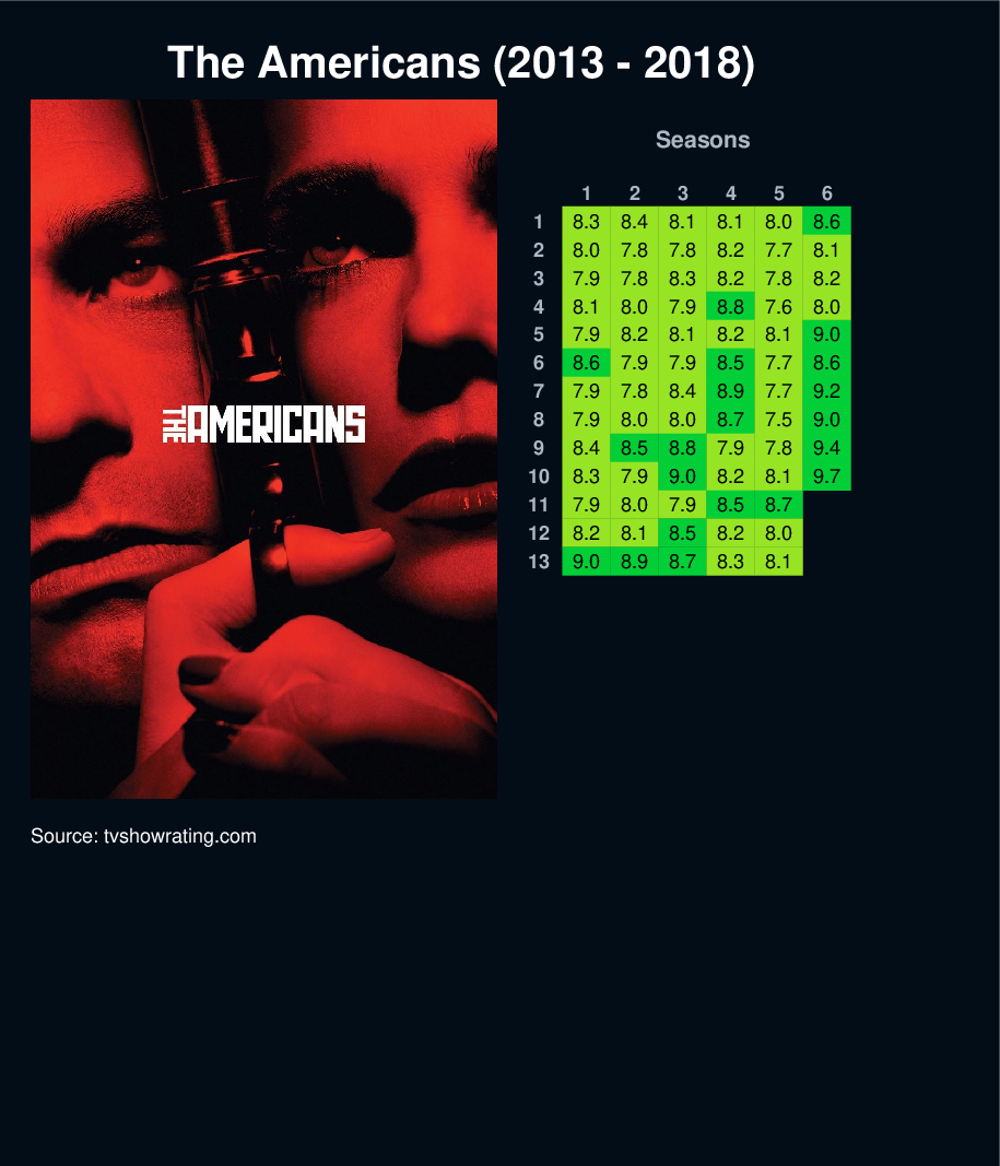 Set during the Cold War period in the 1980s, The Americans is the story of Elizabeth and Philip Jennings, two Soviet KGB officers posing as an American married couple in the suburbs of Washington D.C. and their neighbor, Stan Beeman, an FBI Counterintelligence agent.