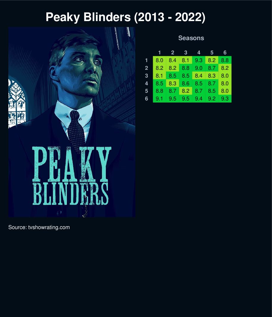 A gangster family epic set in 1919 Birmingham, England and centered on a gang who sew razor blades in the peaks of their caps, and their fierce boss Tommy Shelby, who means to move up in the world.