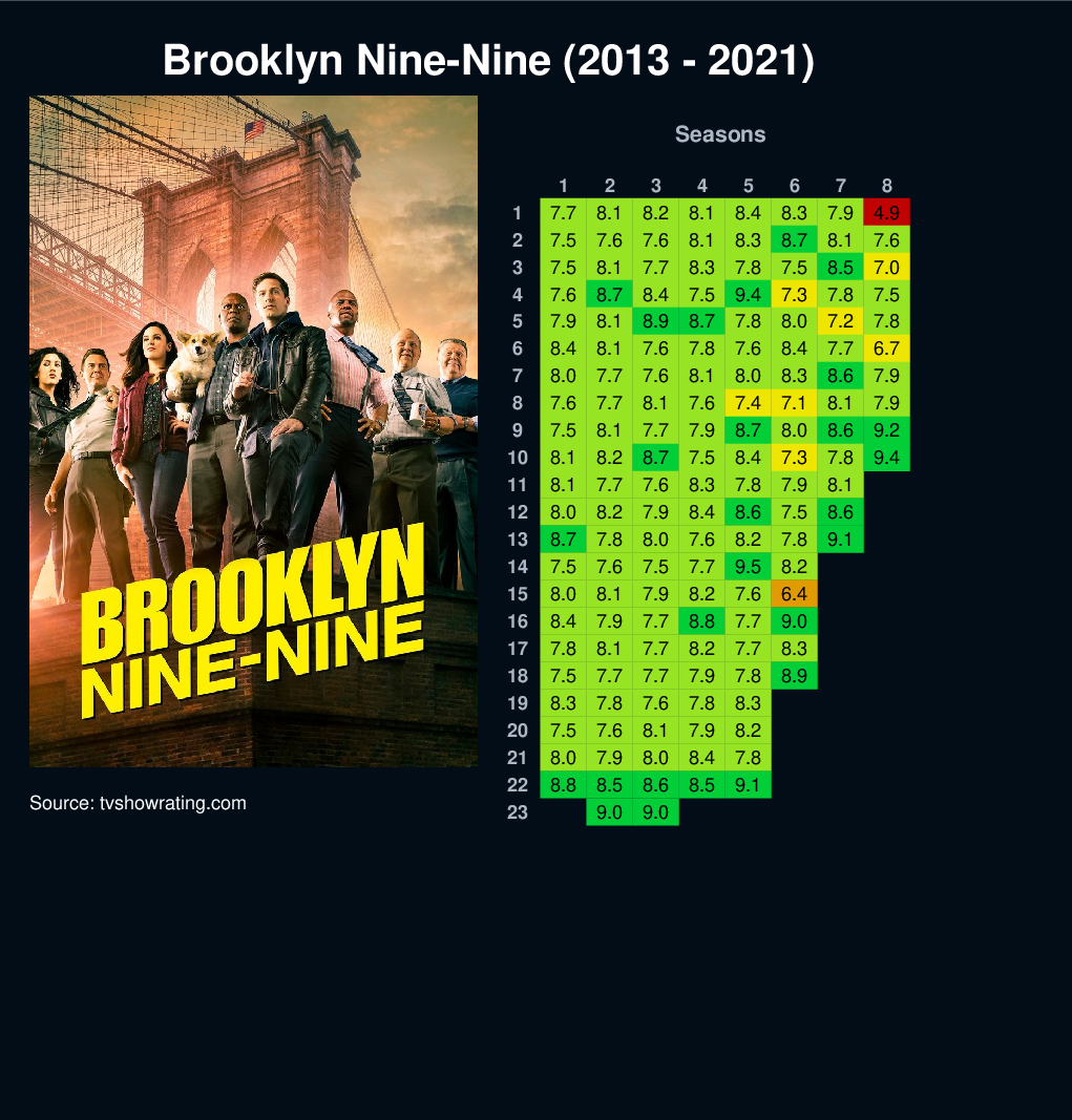 | 1 | 7.7 | 8.1 | 8.2 | 8.1 | 8.4 | 8.3 | 7.9 | 4.9 | |||||||||||||||||||||||||||||||||||||||||