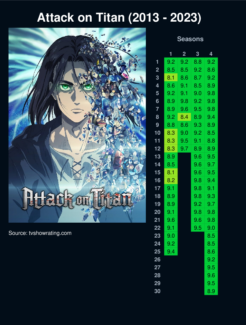 | 4 | 8.6 | 9.1 | 8.5 | 8.9 | |||||||||||||||||||||||||||||||||||||||||||||