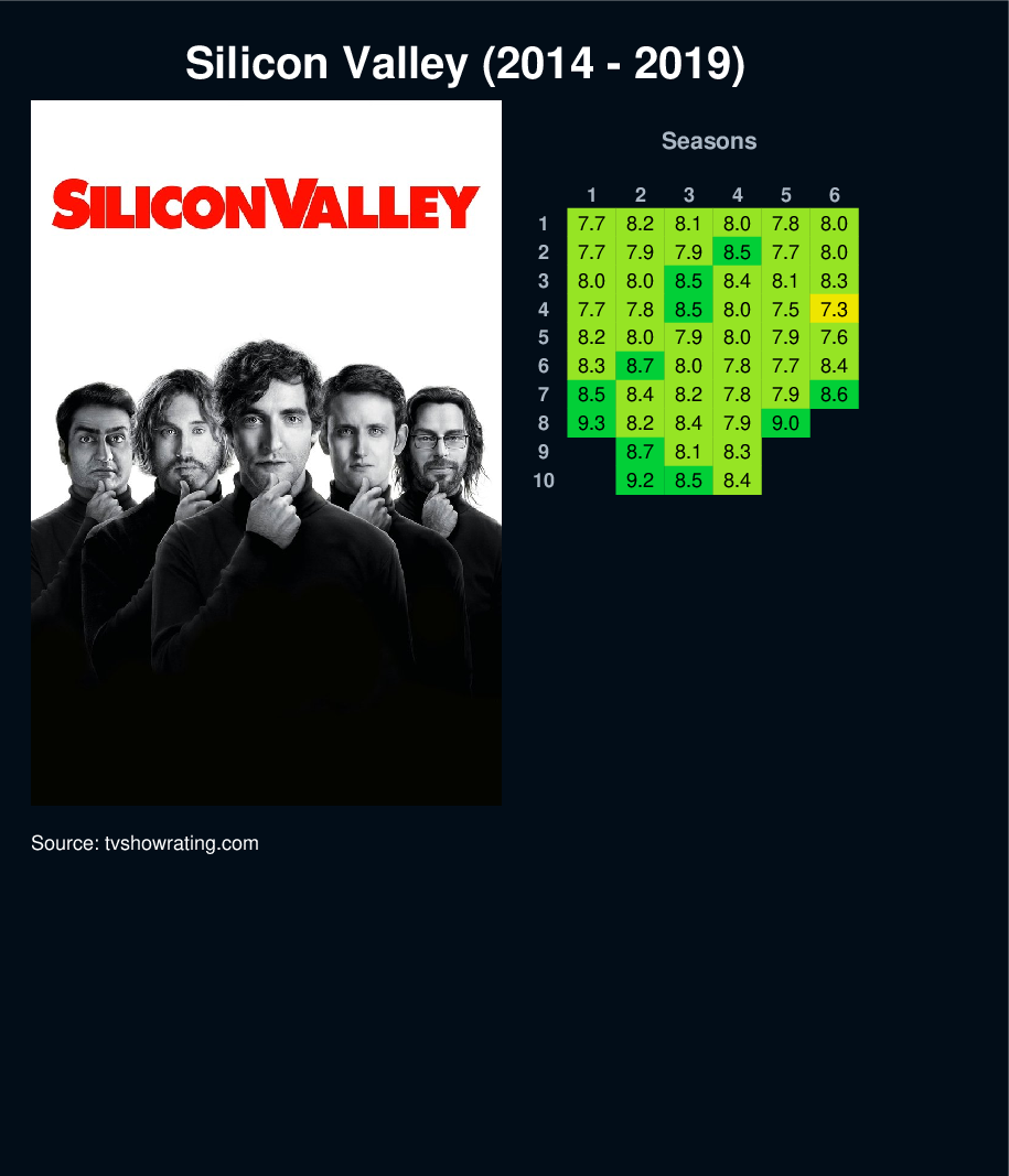 In the high-tech gold rush of modern Silicon Valley, the people most qualified to succeed are the least capable of handling success. Partially inspired by Mike Judge’s own experiences as a Silicon Valley engineer in the late ‘80s, Silicon Valley is an American sitcom that centers around six programmers who are living together and trying to make it big in the Silicon Valley.