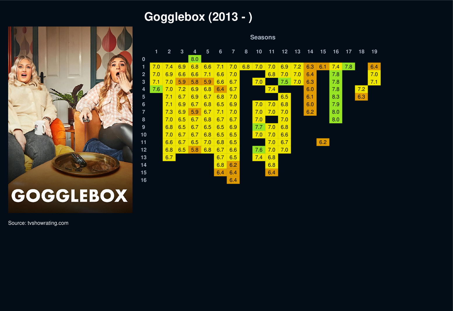 Gogglebox is an entertaining television review programme in which some of Britain's most opinionated and avid telly viewers comment freely on the best and worst television shows of the past week, from the comfort of their sofas.
