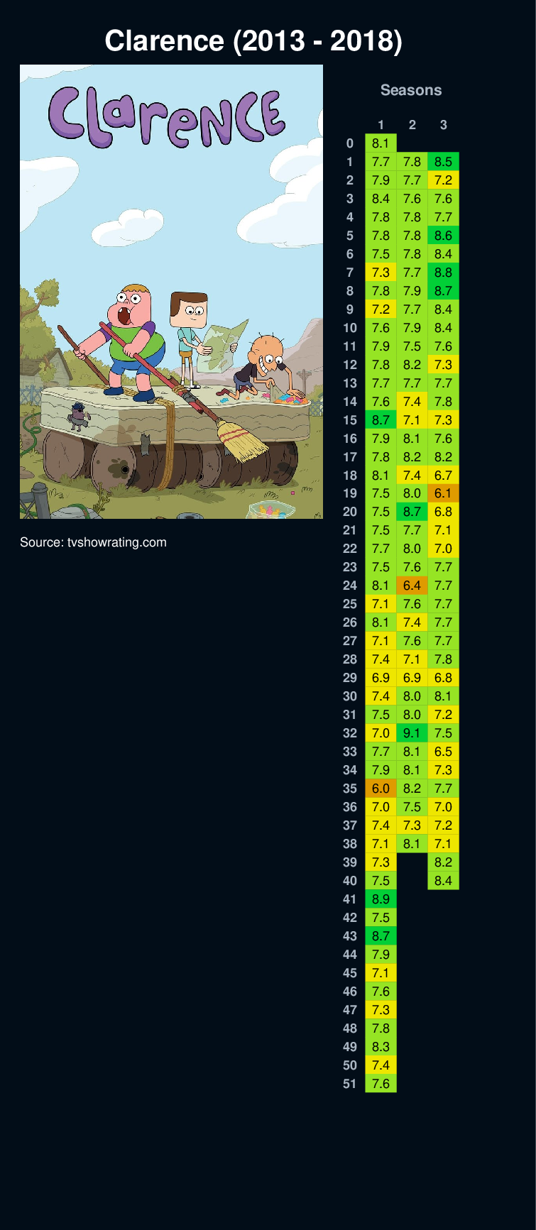 | 44 | 7.9 | ||||||||||||||||||||||||||||||||||||||||||||||||