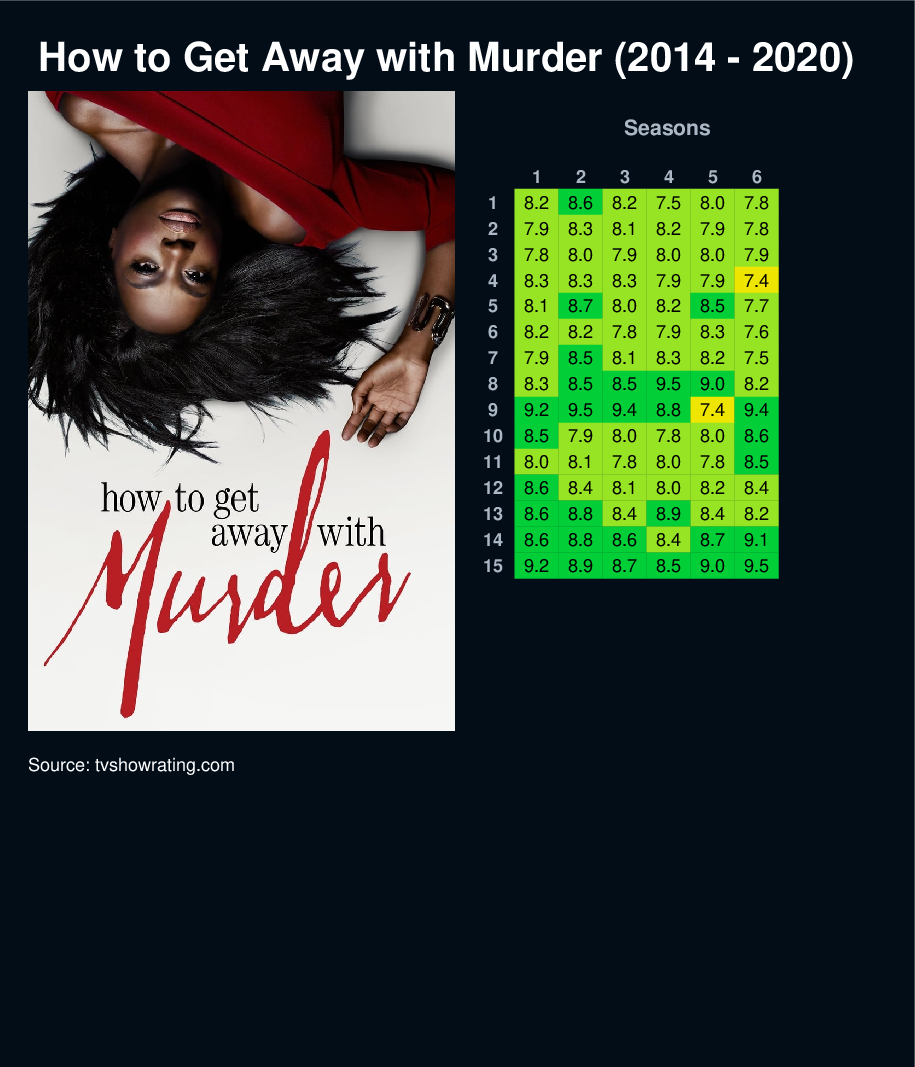 | 6 | 8.2 | 8.2 | 7.8 | 7.9 | 8.3 | 7.6 | |||||||||||||||||||||||||||||||||||||||||||