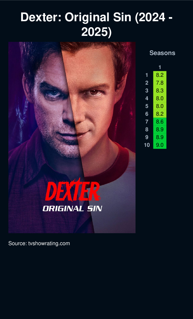 In 1991 Miami, Dexter Morgan transitions from student to avenging serial killer. When his bloodthirsty urges can't be ignored any longer, Dexter must learn to channel his inner darkness. With the guidance of his father, Harry, he adopts a Code designed to help him find and kill people who deserve to be eliminated from society without getting on law enforcements' radar. This is a particular challenge for young Dexter as he begins a forensics internship at the Miami Metro Police Department.